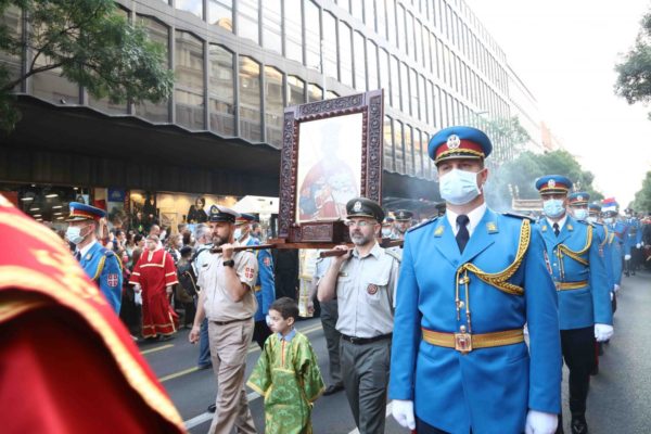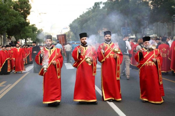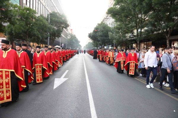 На шествието бяха пренесени светите мощи на св. крал Стефан, както и мощите на св. Петка, чиито свети мощи са били в Белгради преди 500 години (след това са пренесени в Яш, може да прочетете повече тук). Шествието премина през почти целия град, като завърши в катедралана „Св. Сава“, където бе отслужен молебен за сръбския народ и прекратяване на пандемията.