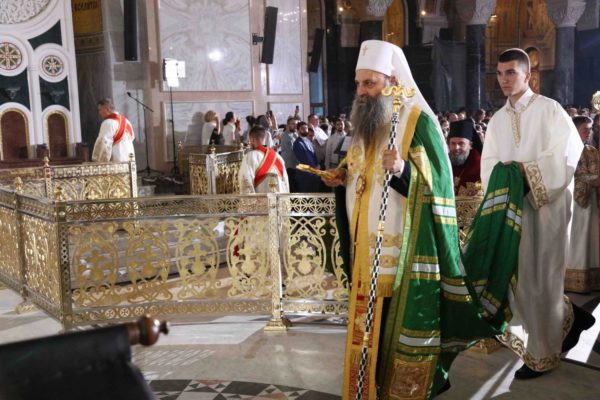 Патриарх Порфирий благослови вярващите, а в своето слово изтъкна, че събитието е особено тържествено за Сръбската църква. „Тази вечер, братя и сестри, се събрахме заедно, на св. Литургия, в това шествие по улиците на Белград. Събрахме се под купола на този красив храм, който е посветен на нашия предшественик, нашия първи архиепископ и архипастир св. Сава. Чрез това шествие по улиците на града ние показахме, че знаем кои сме, занаем от къде сме и накъде отиваме… „, каза патриарх Порфирий.