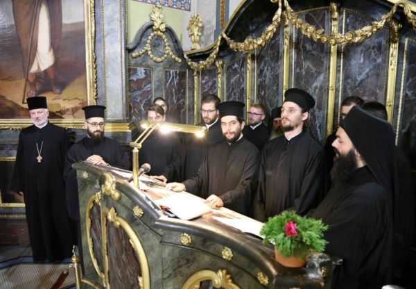 Пошто је пред присутним сабрањем Свете Цркве прихватио вољу и одлуку Светог Архијерејског Сабора, који га је на овогодишњем заседању изабрао за Епископа мохачког, викара Епископа бачког, наречени епископ Дамаскин је началствовао вечерњом службом.