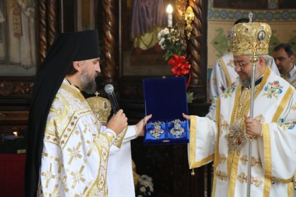 От лица духовенства Старозагорской митрополии со словами поздравления к митрополиту Киприану обратился архимандрит Богослов (Димитров), который преподнес владыке икону с изображением священномученика Киприана.