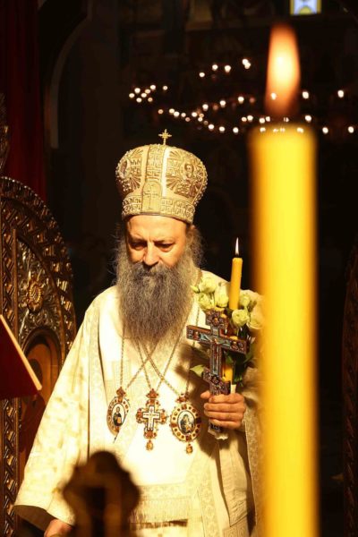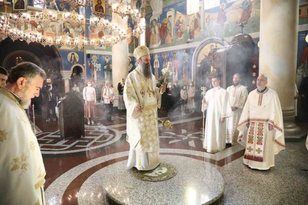 Његова Светост Патријарх српски г. Порфирије служио је 4. маја 2021. године, на Васкршњи уторак, свету архијерејску Литургију у београдском манастиру Ваведења Преосвете Богородице.