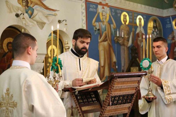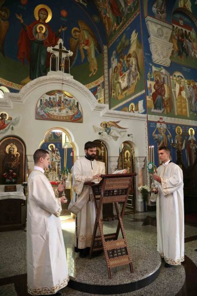 Саслуживали су архимандрит Данило (Љуботиња), духовник храма Преображења Господњег у Загребу; протојереји-ставрофори Милован Глоговац и Милосав Радојевић; протојереј др Зоран Ранковић, декан Православног богословског факултета Универзитета у Београду; јеромонах Сава (Бундало); јереј Чедомир Милосављевић; ђакони Радомир Вручинић и Владимир Пекић, ипођакон Владимир Јелић, чтечеви Андреј Јелић и Његош Стикић, у молитвеном прусуству игуманије Теодоре, ваведењског сестринства и верног народа.