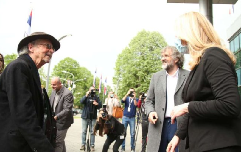 Хандкеа, су у Бањалуци угостили предсједница Републике Српске Жељка Цвијановић, премијер Радован Вишковић, српски члан и предсједавајући Предсједништва БиХ Милорад Додик, српски редитељ Емир Кустурица и ректор бањалучког Универзитета Радослав Гајанин.