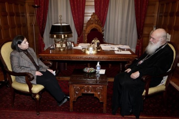 От своя страна, г-жа Катя Георгиу благодари на Архиепископа за приема и изрази радостта си за срещата, отбелязвайки че иска да получи благословията на Негово Блаженство преди да замине за Италия.