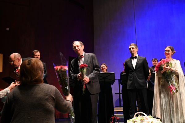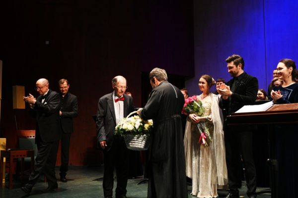 Хочу от всех собравшихся здесь и от всех, кто не смог по причинам нынешнего трудного времени прийти на этот концерт, пожелать Вам доброго здоровья и творческих успехов. Пусть Господь благословляет Ваши труды и хранит Вас на многая и благая лета».