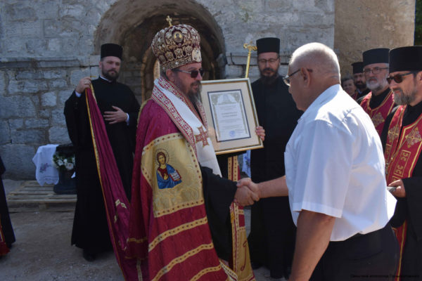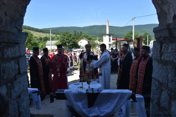 – Сваки пут када обнављамо светиње, ми заправо обнављамо себе, нашу заједницу са Богом, а при томе сведочимо да нисмо заборавили на наше светиње и храмове. Наши предци су градили храмове, да храмови буду учионице, да се у храмовима проповеда реч Божја, да се ми, који смо сабрани учимо речи Божјој, да се учимо поукама светог Јеванђеља. Исто тако, наши преци су подгли и овај храм како би у њему славили Име Божје, и како би кроз све векове и ми данас имали и служили у овоме светоме храму, поручио је вернима епископ Герасим.
