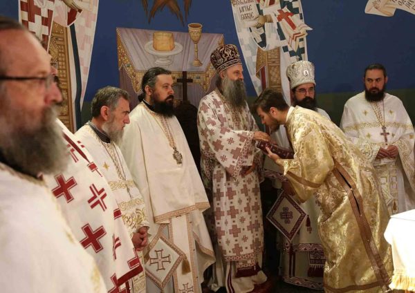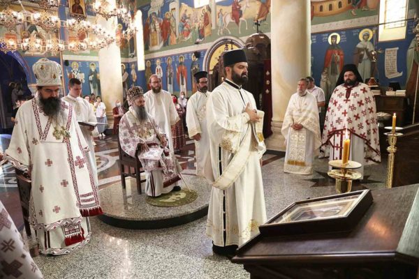 Саслуживали су Епископ топлички г. Јеротеј, изабрани Епископи хвостански г. Јустин и марчански г. Сава, протосинђели Данило (Гаврановић) и Нектарије (Ђурић), протојереј-ставрофори Милован Глоговац и Милосав Радојевић, јереј Чедомир Милосављевић и ђакони Радомир Врућинић и Владан Таталовић.