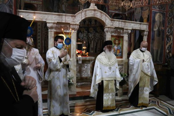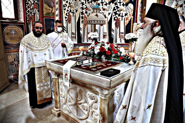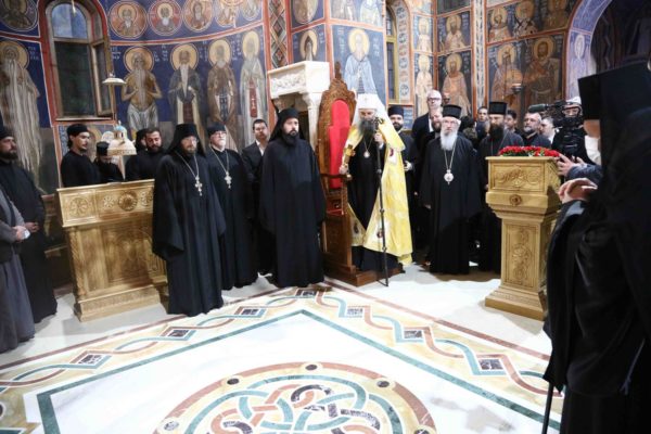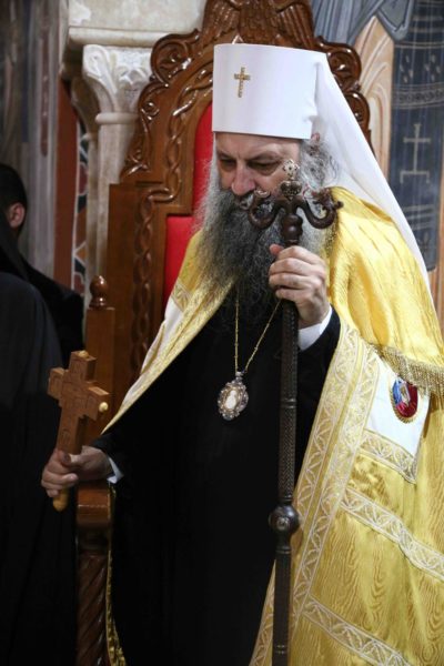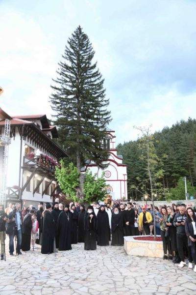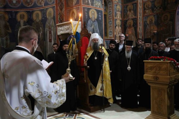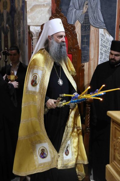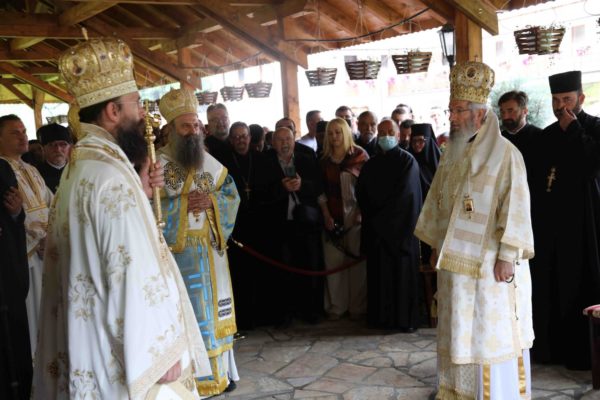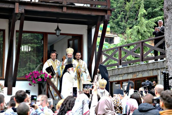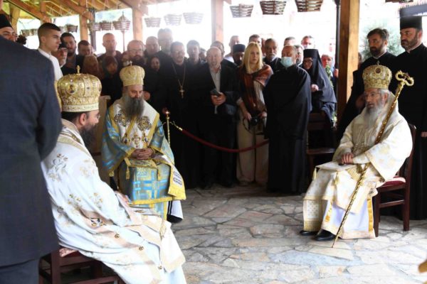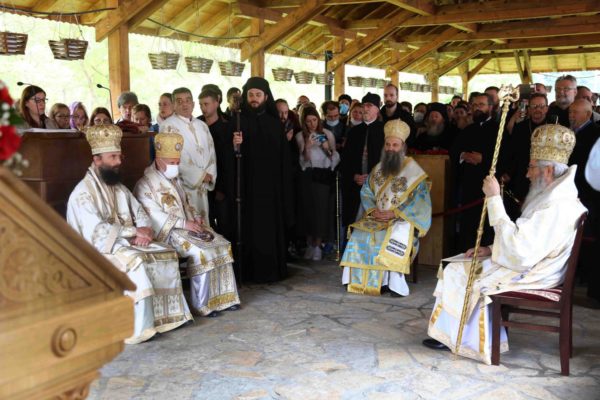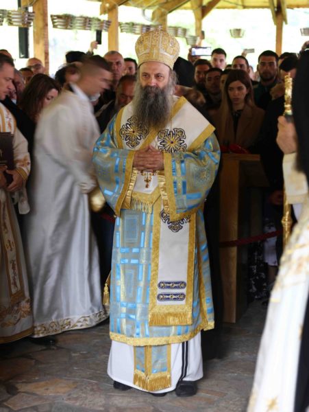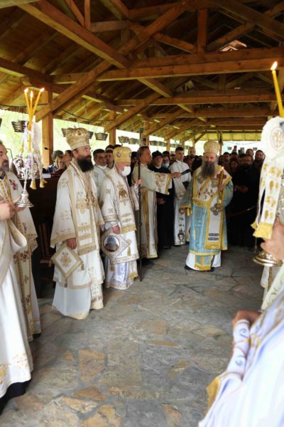 Његова Светост Патријарх српски г. Порфирије служио је 16. маја 2021. године, у Недељу мироносица, свету архијерејску Литургију у манастиру Туману.