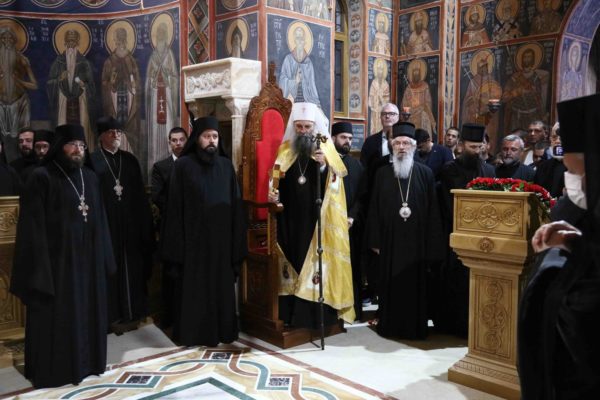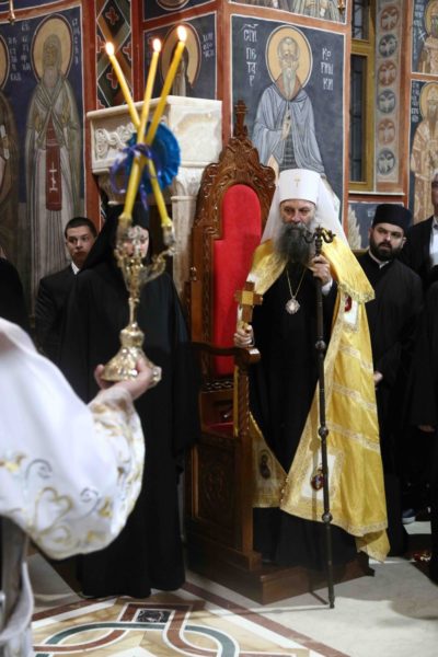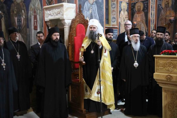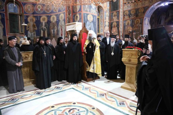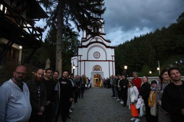 Верни народ се сабрао са свих страна да прими благослов Патријарха српског. Његова Светост је поучио народ истинама вере, у чијем темељу је васкрсење Христово и живот у литургијској заједници.