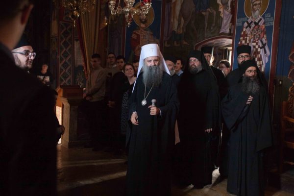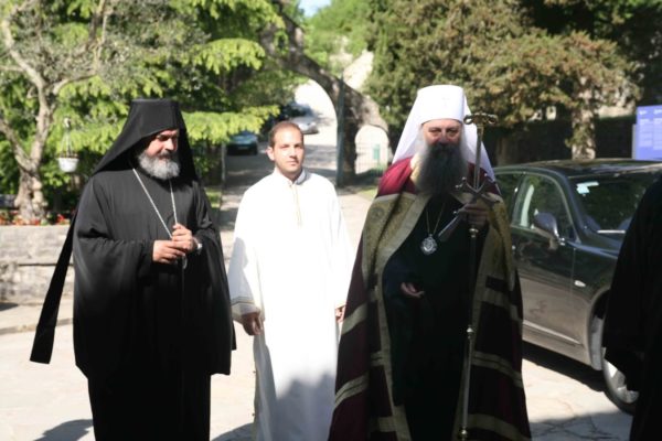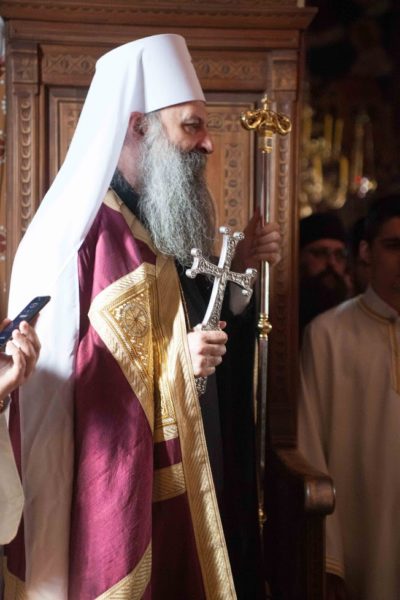 „Велика је радост, и то не радост као проста емоција, него духовна, суштинска радост, што данас благодарећи Божјем промислу, али и љубави Вашој, драги Владико, имам прилику да дођем у ову свету обитељ, на место у коме је проповедао и сам апостол Павле. Радост је још већа чињеницом да долазимо у атмосфери радости Васкрсења Христовог. Кад год сам долазио раније, а и овога пута такође, осетио сам управо ту чињеницу да је Господ наш распети и васкрсли победио нашег највећег непријатеља и отворио пут неизмерној, неописивој, бескрајној радости присуства љубави Његове. Ту истину, ту радост, сваки пут сам осећао, кад год бих дошао овде и ево, хвала Богу, данас осећам још више него раније да тамо где постоје љубав, подвиг и труд васкрсавамо и ми, људи. Доказ за то заиста јесу ова светиња и ова Епархија која је кроз историју пролазила разна беспућа између Сциле и Харибде, искушења са свих могућих страна, некада чак и изнутра. Та искушења била су позив управо на крст Христов, на распеће и сведочење вере у Њега, зато је сваки пут то страдање водило у Васкрсење. Хвала Богу, то је и данас тако, без обзира на бројке и проценте који могу и да заварају. Можда нема толико православних на овим просторима колико је било не тако давно, али оно што је много важније, ту где су православни и колико год да их има, има заиста и православља, тј. има вере у Христа и у суштинску победу Цркве Христове са Њим и за Њега, а та победа увек значи победу љубави“, истакао је патријарх Порфирије.