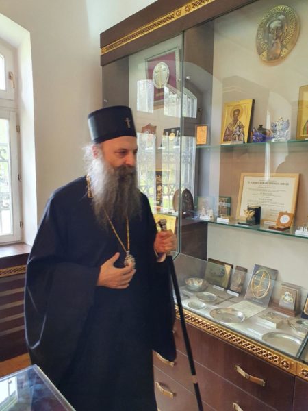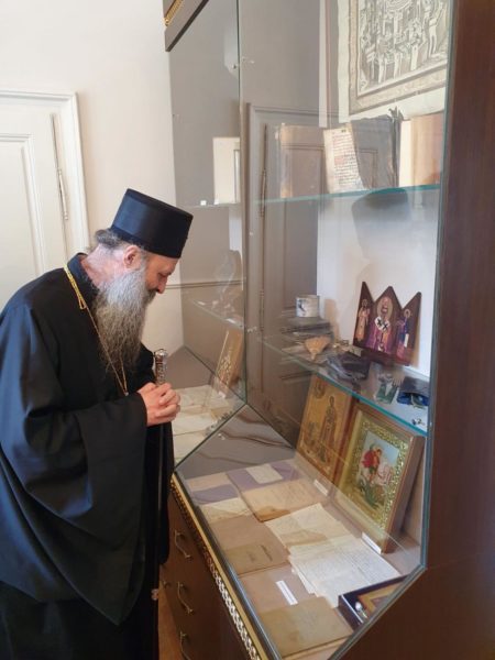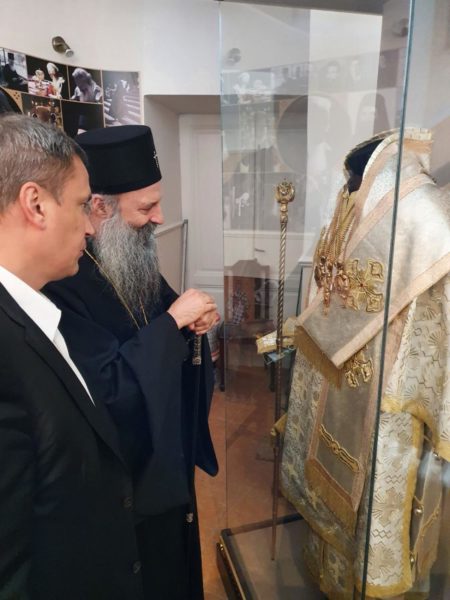 Посету манастиру Раковици Патријарх српски г. Порфирије је завршио обиласком спомен собе патријарха Павла.