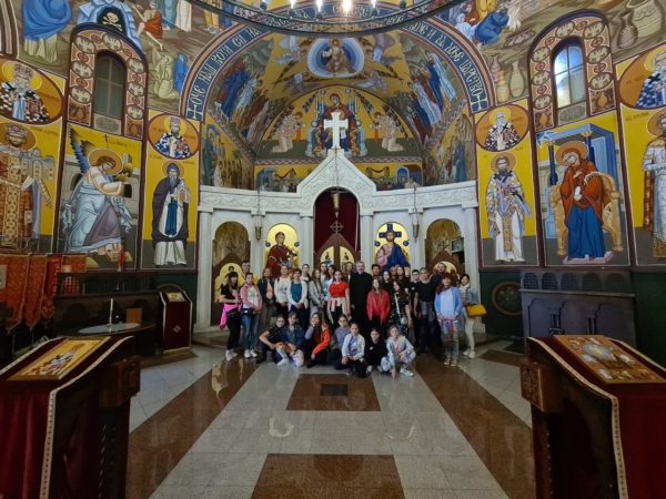 У порти цркве као благослов и поклон на молитвено сјећање наш водич Владимир Васиљевић је свим ђацима као и одраслима из групе поклонио посебно израђене иконице на чијој позадини се налазе слике цркава које смо са њим предвођени ових дана посјетили широм града Сарајева.