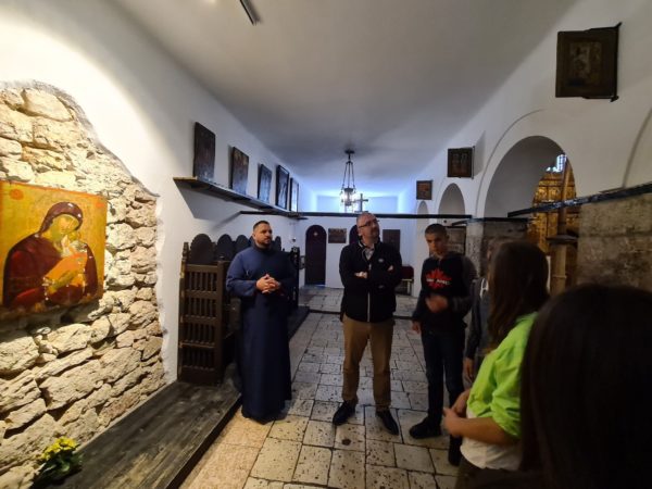Други дан нашег боравка у граду Сарајеву смо започели литургијским сабрањем у „Старој цркви“ посвећеној Светом Архангелу Михаилу. Свету литургију су служили протојереј-ставрофор проф. др Владислав Топаловић, декан Богословског факултета Светог Василија Острошког у Фочи и ђакон Вукота Вишњевац који су нам послије молитвеног сабрања припремили мало освјежење, угодан разговор и дружење, након тога смо организовали заједнички доручак у пригодној порти цркве.