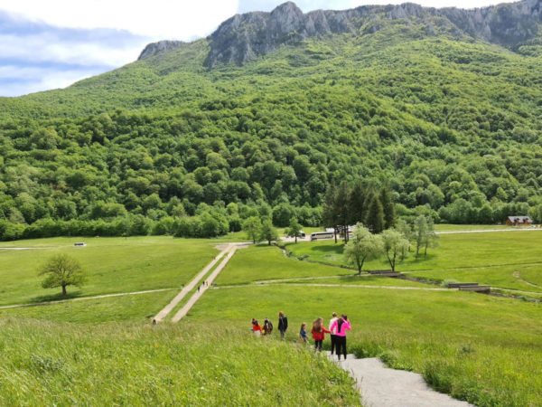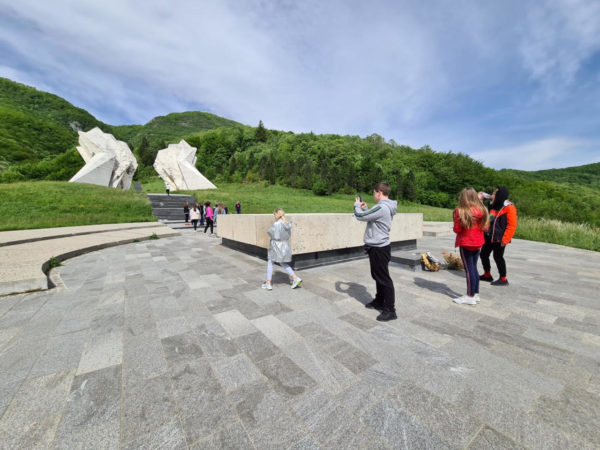 Након краћег дружења, ријечи благодарности и поклона које су домаћини уручили вјероучитељу упутили смо се ка „Долини хероја“. Долина хероја је назив меморијалног комплекса, који се налази у близини села Тјентишта, у националном парку „Сутјеска“. Овај комплекс посвећен је бици на Сутјесци, која се одиграла од 15. маја до 15. јуна 1943. године, а свечано је отворен 1974. године. О детаљима Битке на Сутјесци вјероватно сте упознати кроз историју нашег народа, а ми је овде спомињемо јер је највећи број учесника и страдалника у бици био крштени православни српски народ. Пењући се до споменика уживали смо у љепоти ваздуха и природе коју видимо око себе, а која нас није оставила равнодушне.