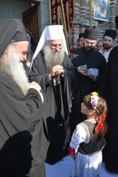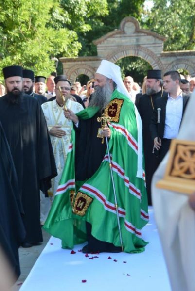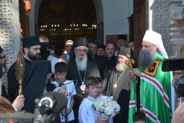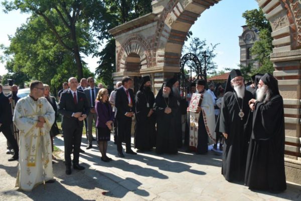 У пратњи Његове Светост Патријарха били су Преосвећени Епископи ремезијански г. Стефан и наречени марчански г. Сава и ђакон Радомир Врућинић. Испред цркве Лазарице, Патријарха и госте су дочекали Преосвећена господа Епископи крушевачки Давид, врањски Пахомије, зворничко-тузлански Фотије, британско-скандинавски Доситеј, тимочки Иларион, нишки Арсеније, шумадијски Јован и изабрани мохачки Дамаскин.