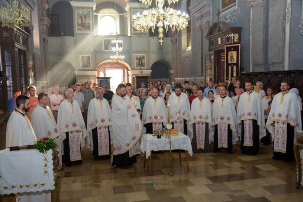 На вечерњем богослужењу је началствовао протопрезвитер Предраг Толимир, парох храма Светих Кирила и Методија на Телепу, уз саслужење протопрезвитера Милана Малинића, пароха Успенског храма, и протопрезвитера Синише Панића. После вечерњег богослужења, извршен је чин благосиљања славских дарова које је принео кум славе г. Александар Степанић.