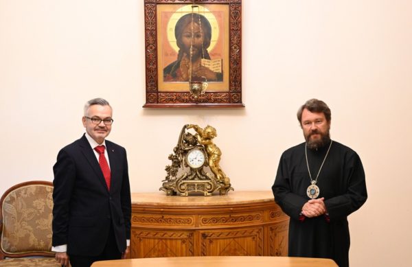 Митрополит Иларион тепло приветствовал гостя в стенах старейшего синодального учреждения Русской Православной Церкви. Участники встречи обменялись мнениями о текущей ситуации, связанной с распространением новой коронавирусной инфекции, оказывающей влияние на международную активность, церковную жизнь в России и Польше.