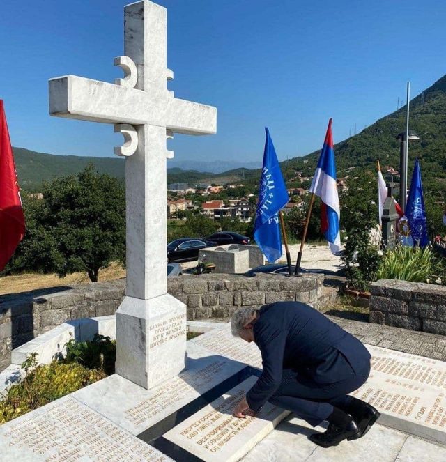 Предсједник Владе Црне Горе Здравко Кривокапић клекнуо је данас, на Видовдан, пред гробницом страдалника од бољшевичког терора у манастиру Подластва Грбаљска.