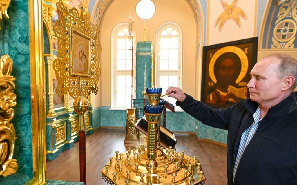Глава государства посетил несколько церквей на территории монастыря и поставил свечи.