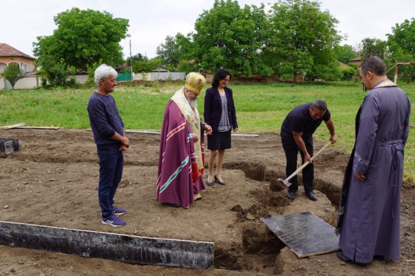 Великотърновският митрополит Григорий освети основите, направи първа копка и благослови построяването на храм „ Св. пророк Илия” в село Изгрев днес.
