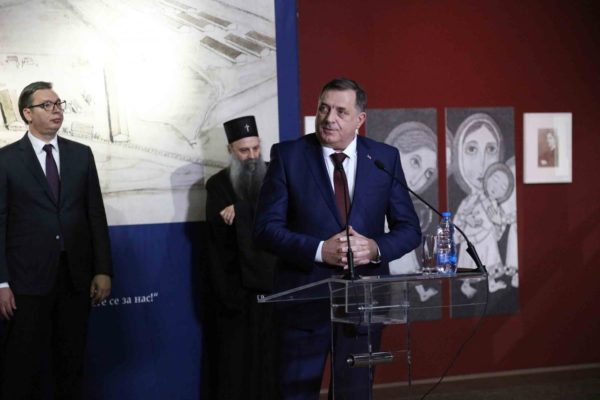 Осврнувши се на изложбену поставку, српски члан и председавајући Председништва Босне и Херцеговине г. Милорад Додик је рекао да свака од слика поред напора уметника показује и асоцира на тугу и страдање које је било безразложно. „Жал и туга остаје и у овом времену”, рекао је г. Додик.