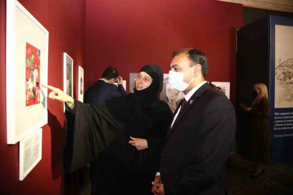 „Улога уметности није само да фотографише реалност, већ уметност детектује оно што је суштински и егзистенцијални проблем човека у времену. Уметност је позвана да даје и перспективу и будућност. Имамо праву уметност на месту највећег зла. На месту где се демони смеју изникла је ова лепота, истинска и аутентична уметност”, истакао је Патријарх.
