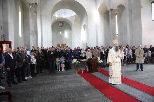 – Шта је друго историја људскога рода кроз све своје аспекте деловања, и кроз науку, и кроз уметност, филозофију, кроз све оно што човек мисли, што говори, што јесте, него покушај да човек покида окове смрти, да победи смрт, да заправо дотакне живот вечни. Без обзира на све људске домете, свако ко се родио и дошао на овај свет, он је из овога света отишао. Ми, православни Срби, знамо добро да је вера у Бога, православна вера, у прошлости обликовала и градила наш народ, отварала путеве и давала смисао постојању свакога човека, смисао и онда када није било једноставно и није било лако. Вера православна је заправо темељ, извор нашега идентитета, без ње, готово сам сигуран, да наш народ у најмању руку у овом облику, у овој форми – не би данас постојао и не би оставио све оне лепоте стваралаштва свога које су многе од њих украсиле и светску културу и постале део светске баштине, беседио је патријарх Порфирије.