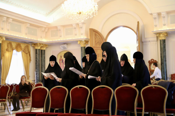 Сестры Горненской обители исполнили для Блаженнейшего Патриарха Феофила и гостей приема рождественские песнопения и колядки. Затем сотрудники Миссии вручили Его Блаженству поздравительный адрес Святейшего Патриарха Московского и всея Руси Кирилла, цветы и праздничные подарки.