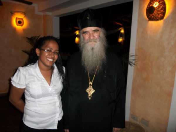 А онда су године 2017. упознали архимандрита, др Евстатија Милоша Аздејковића, који је по благослову митрополита први пут дошао из Венецуеле и заједно са грчким свештеником, оцем Емануилом Ремундакисем, почео да окупља све православне који живе на овом карипском острву. На Светој Литургији се тада сабрало око 40-ак младих момака и девојака, који су спремили и трпезу. Литургија је служена под стрехом од трске, али то није умањило доживљај богослужења.