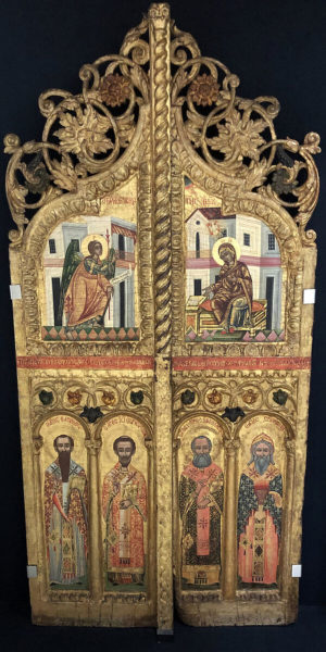 Царские врата датируются 1778 годом, согласно надписи на обратной стороне. Они впоследствии попали в Японию, где были обнаружены в Колледже искусств города Канадзава на острове Хонсю в 1990-х годах. И, наконец, после многих лет переговоров, царские врата вернулись на родину, завершив «один из самых сложных и интересных случаев репатриации».