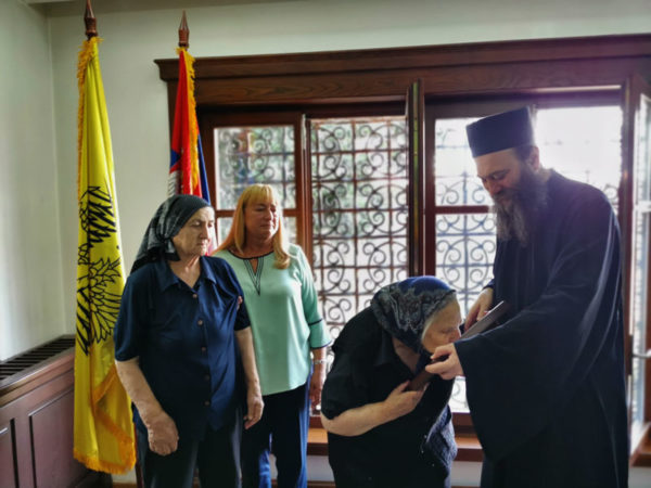 На пријему у Задужбини Хиландара у Београду, игуман Методије је саслушао потресне животне исповести две мајке, сада старице, о страдању које је задесило њихове породице.