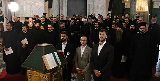 Посебном благољепију свете Литурије и првој хиротонији у новом Саборном храму Архиепископије београдско-карловачке и наше помесне Цркве допринели су здружени српски византијски хорови којима су дириговали ђакон др Владимир Антић и др Георгије Констандину.