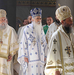 Предстојатељу Српске Православне Цркве су саслуживали Његово Блаженство Архиепископ охридски и Митрополит скопски г. Јован и Преосвећена господа Епископи сремски Василије, будимски Лукијан, банатски Никанор, бачки Иринеј, британско-скандинавски Доситеј, врањски Пахомије, зворничко-тузлански Фотије, милешевски Атанасије, рашко-призренски Теодосије, крушевачки Давид, славонски Јован, тимочки Иларион, нишки Арсеније, аустралијско-новозеландски Силуан, осечкопољски и барањски Херувим, ваљевски Исихије, стобијски Давид, ремезијански Стефан и умировљени канадски Георгије.