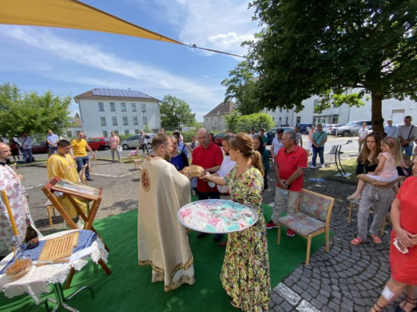 При крају свете Литургије освећена су славска знамења након којих је парох срдачно захвалио румунском пароху и верном народу који је дошао из Касела, Липштата, Фулде, Гетингена и Ерфурта. Након дужег времена парохијани у Каселу, услед попуштања законских прописа савезне покрајине Хесен, у вези са корона вирусом, добили су прилику да се окупе након свете Литургије у порти на послужењу.