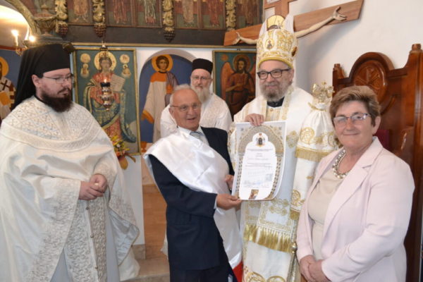 На крају свете Литургије, печујски парох Милан Ерић заблагодарио је Његовом Преосвештенству на благослову и посети којом је увеличао прославу храмовне славе. Том приликом Црквена општина је доделила грамате заслужним члановима парохије у Печују, који својим трудом и пожртвованошћу у парохији сведоче хришћанску љубав и тиме пружају пример другима.