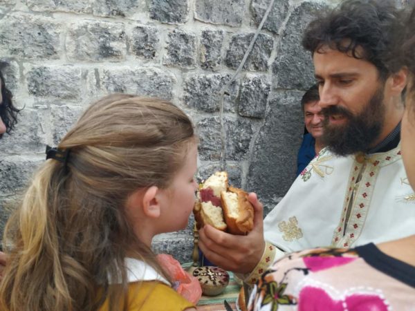 Колач је такође принела и десетогодишња Сара Косјерина која је прославила свој имендан, Преподобну Сару Мисирску, која се такође празнује данас.