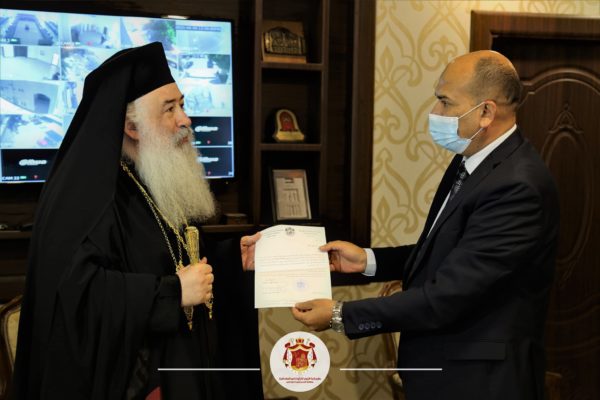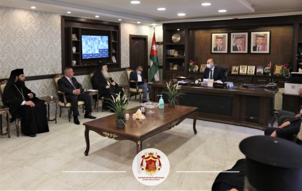 من جانبه، شكر صاحب السيادة المطران خريستوفوروس عطوفة المحافظ النسور ورئيس مجلس المحافظة المجالي على حسن الإستقبال ناقلًا تحيات صاحب الغبطة البطريرك كيريوس كيريوس ثيوفيلوس الثالث بطريرك المدينة المقدّسة مقدماً الشكر الجزيل على محبته الكبيرة والتعاون المميز الذي يجمع الكنيسة الأرثوذكسية المحلية بكافة مؤسسات الدولة الأردنية الهاشمية، مشيدًا بدور الهاشميين في الحفاظ على هوية المدينة المقدّسة من خلال الوصاية الهاشمية على المقدّسات المسيحية والإسلامية، مؤكدا أن الوجود المسيحي يحافظ على التوازن المجتمعي في بلادنا المقدّسة وعلينا أن نكون جميعًا يدًا واحدة حتى نجتاز التحديات القادمة، كما وقدم سيادته كافة الأوراق الكنسية والرسمية المتعلقة بتسليم الرئاسة الروحية للأرشمندريت سابا.