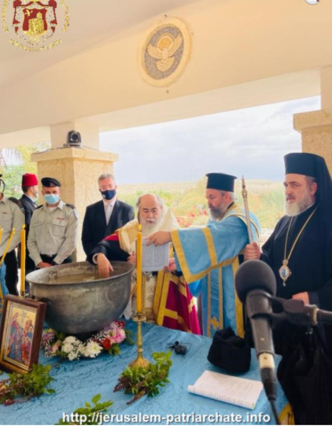 بعد ذلك مباشرة, غادر غبطة البطريرك البطريركية متوجهاً الى دير القديس يوحنا المعمدان الواقع على ضفة نهر الاردن يرافقه بعض أساقفة وآباء أخوية القبر المقدس والقنصل اليوناني العام في القدس السيد إفانجيلوس فِليوراس. هذا العام وبسبب الإجراءات الوقائية لجائحة كوفيد 19 لم يتم العبور عن طريق أريحا كما هو متبع.