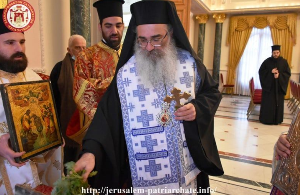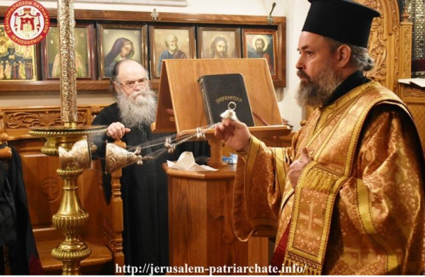 وفي كنيسة القديس يعقوب اخو الرب ترأس سيادة رئيس اساقفة مادبا كيريوس أريستوفولوس, خدمة قداس برامون العيد للرعية الاورثوذكسية في المدينة المقدسة اورشليم, وبعد صلاة القداس توجه سيادة المطران مع كهنة الكنيسة الى دار البطريركية للتكريس والتبارك من الماء المقدس.