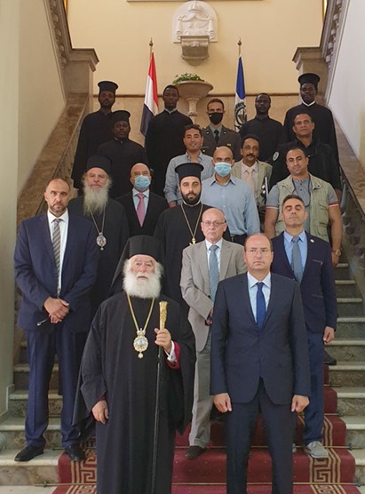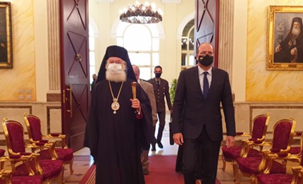 أمس 4 يوليو 2021 استقبل صاحب الغبطة بابا وبطريرك الإسكندرية وسائر أفريقيا البابا ثيودروس الثاني في مقر البطريركية بالإسكندرية وزير دفاع جمهورية قبرص السيد/ خارالامبوس بيتريديس الذي يزور مصر بعد أن حضر افتتاح قاعدة جديدة المصرية “3 يوليو” المطلة على البحر المتوسط بالقرب منطقة مرسى مطروح. وكان برفقة وزير الدفاع الفبرصي سفير جمهورية قبرص السيد/ هوميروس مافروماتيس وكذلك الملحق العسكرس بسفارة جمهورية قبرص في مصر المقدم/ كوستاس فوتيو.