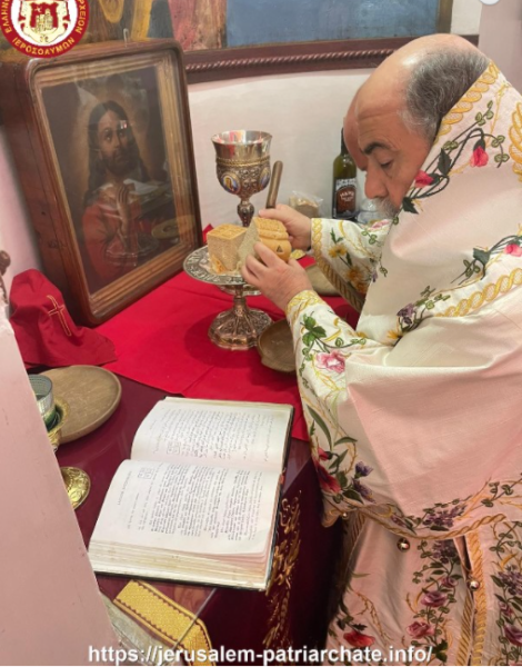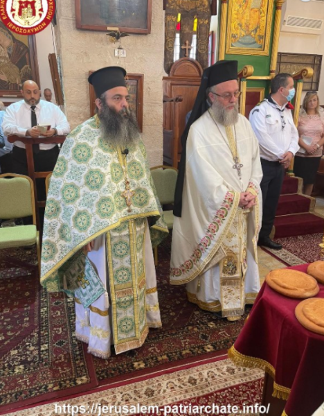 ترأس خدمة القداس الإلهي غبطة البطريرك كيريوس كيريوس ثيوفيلوس الثالث يشاركه سيادة رئيس أساقفة قسطنطيني كيريوس أريسترخوس, سيادة متروبوليت إيلينوبوليس كيريوس يواكيم, الكاماراس الأرشمندريت نيكتاريوس, آباء الرعية الأورثوذكسية في بيت جالا قدس الأب بولس, قدس الأب يوسف, قدس الأب الياس, والمتقدم في الشمامسة الأب ماركوس, وترتلت جوقة الكنيسة بقيادة السيد نضال سمعان. وحضر القداس الإلهي الرئيس الروحي في بيت جالا قدس الأرشمندريت إغناطيوس وعدد كبير من أبناء الرعية والقنصل اليوناني العام السيد إيفانجيلوس فليوراس.