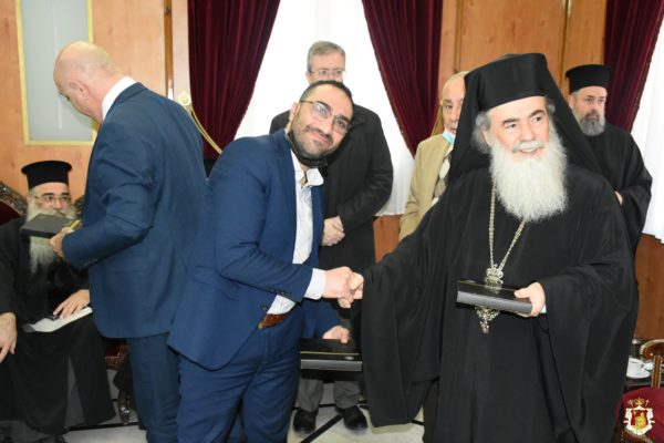 وبدوره، عبّر غبطة البطريرك ثيوفيلوس الثالث عن تقديره لجهود نيافة المطران فينذكتوس في رعاية كنيسة المهد وخدمة ابناء الكنيسة الارثوذكسية في منطقة بيت لحم، كما اشاد غبطته بنشاطات الجمعية الخيرية الوطنية الارثوذكسية – بيت لحم، وفعاليتها لخدمة المجتمع مرحباً بالتعاون مع الجمعية من خلال منحها قطعة ارض لصالح بناء مشروع الاسكان لمنفعة الاهل في بيت لحم. كما قدم غبطته الشكر للجنة الرئاسية العليا لشؤون الكنائس لمساهمتها في انجاز الخطوات الاولى من هذا المشروع.