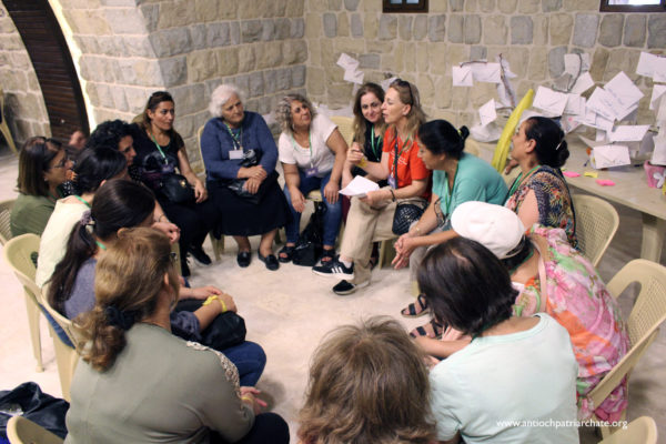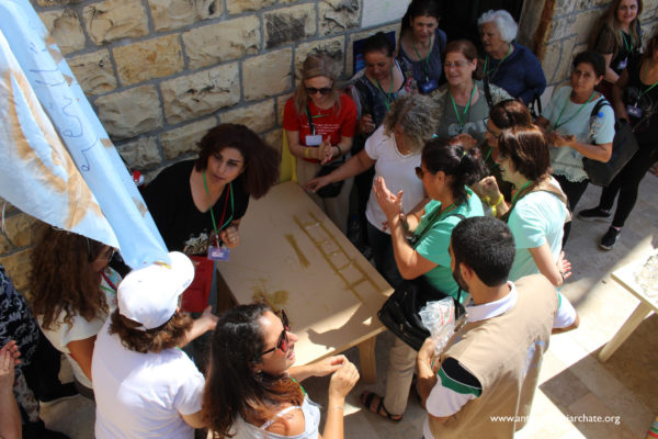 وبعد الغداء والقيلولة عملت السيدات عبر فرقهن في ورشة عمل مستوحاة من موضوع اليوم، بحثت خلالها في نصوص من الكتاب المقدس، ثم عرضت كل فرقة عملها أمام الجميع بإشراف الأب بطرس جمل.
