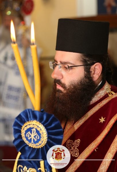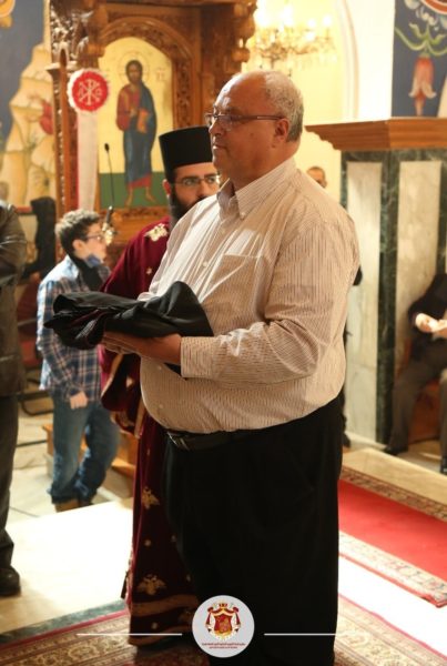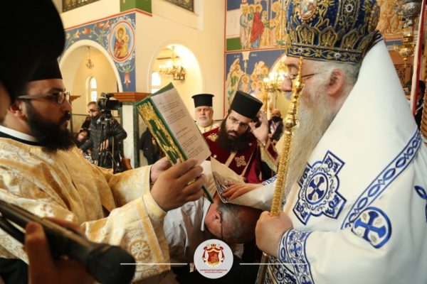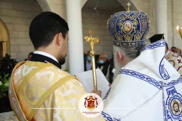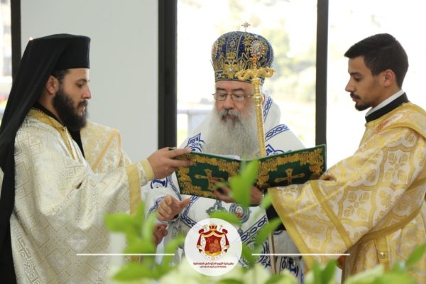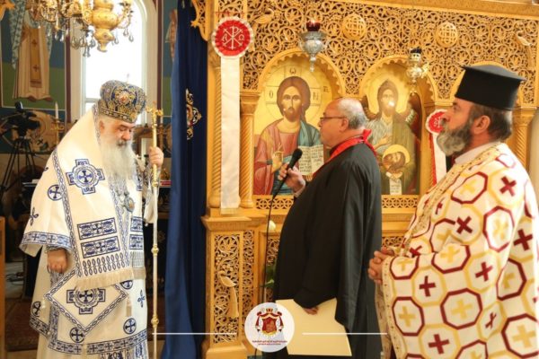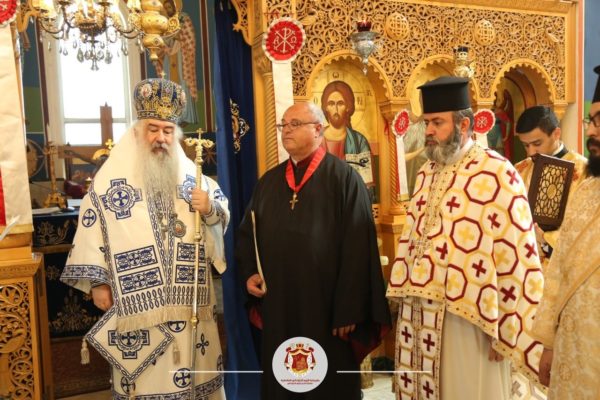 في الختام أقام سيادته خدمة السيامة للأخ منيف طعيمه بوضع اليد وتصييره مرتلاً على ذات الكنيسة، مانحاً إياه وسام القبر المقدس