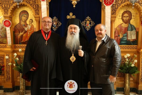 من جانبه قدم الأخ منيف شكره المليء بالإمتنان لصاحب الغبطة على مباركته بمنحه هذه الرتبة ووسام القبر المقدس على يد صاحب السيادة المطران خريستوفوروس، مؤكداً أنه سيبقى على الدوام خادماً أميناً لبطريركتنا الحبيبة التي تستحق على الدوام الخدمة بكل إخلاص وأمانة.