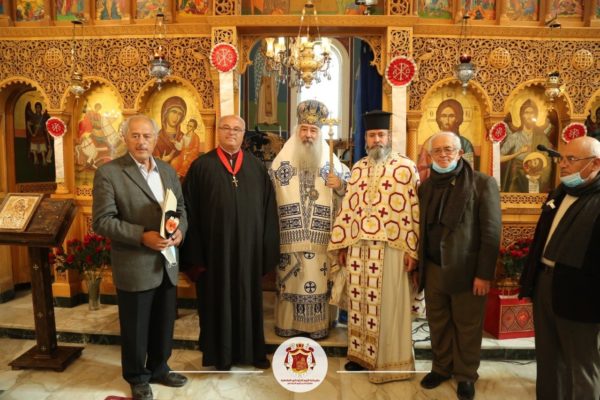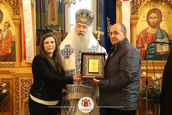 وقدم سيادته درع المطرانية للمهندس فرحان شحاتيت الذي قام بالإشراف على الأعمال الإنشائية في مبنى التوسعة الجديد في الكنيسة تقديراً لجهوده مع عائلته المحبة لبيت الله.
