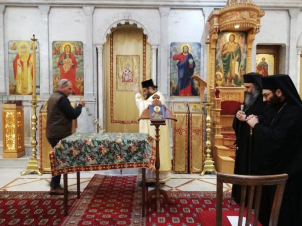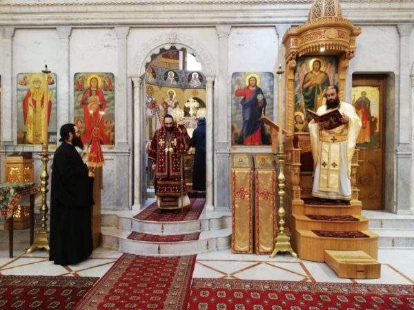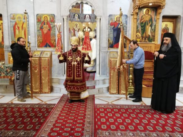 بعد العظة توجه المطران (غندور)بالشكر العميق للمتروبوليت (الصوري)، على بركة إقامة الذبيحة الإلهية.