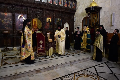 ترأس صلاة الغروب في دير سيدة البلمند سيادة المتروبوليت أفرام كيرياكوس مطران طرابلس والكورة وتوابعهما، بمشاركة رئيس دير سيدة البلمند البطريركي الأرشمندريت رومانوس الحنّاة، وعميد المعهد الأرشمندريت يعقوب خليل مع لفيف من الكهنة.