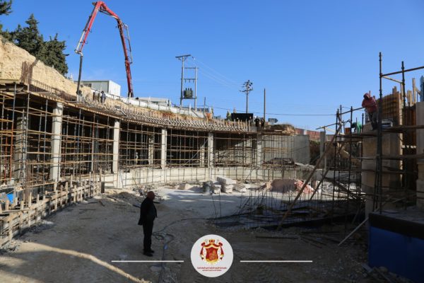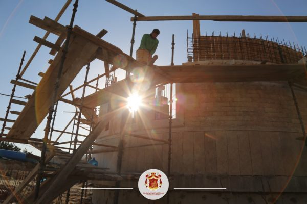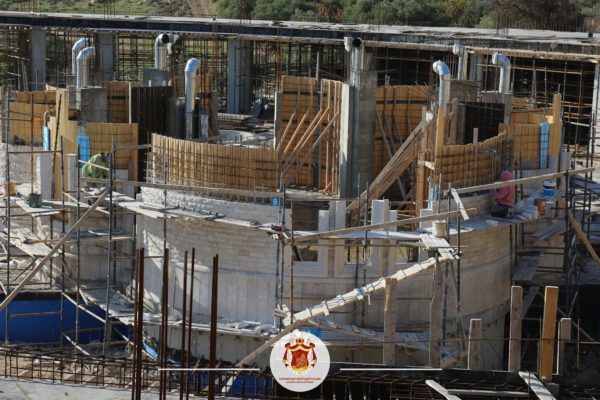 حيث ببركة من لدن الرب الإله تم الإنتهاء من صب الخرسانة الأولى من عقدة الطابق الأرضي لمبنى المركز المحيط بكنيسة الأقمار الثلاثة وهي تشكل ما نسبته ثلاثين بالمئة من المساحة الإجمالية للطابق الذي قيد التنفيذ.