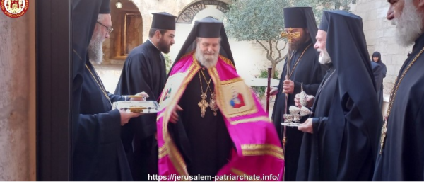 خلال القداس الإلهي حضر الى دير غبطة البطريرك كيريوس كيريوس ثيوفيلوس الثالث مع آباء من أخوية القبر المقدس للتبارك.